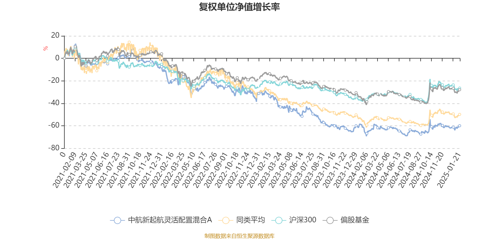 截至1月21日,中航新起航灵活配置混合A近三个月复权单位净值增长率为2.71%,位于同类可比基金52/182;近半年复权单位净值增长率为9.95%,位于同类可比基金104/182;近一年复权单位净值增长率为1.03%,位于同类可比基金138/174;近三年复权单位净值增长率为-51.16%,位于同类可比基金102/109。