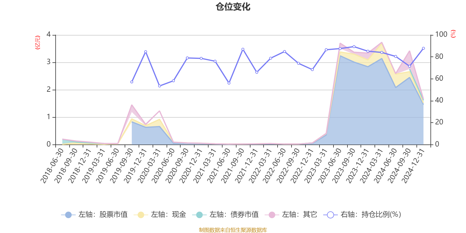 据定期报告数据统计,近三年平均股票仓位为81.56%,同类平均为86.41%。2023年三季度末基金达到89.36%的最高仓位,2020年一季度末最低,为53.47%。